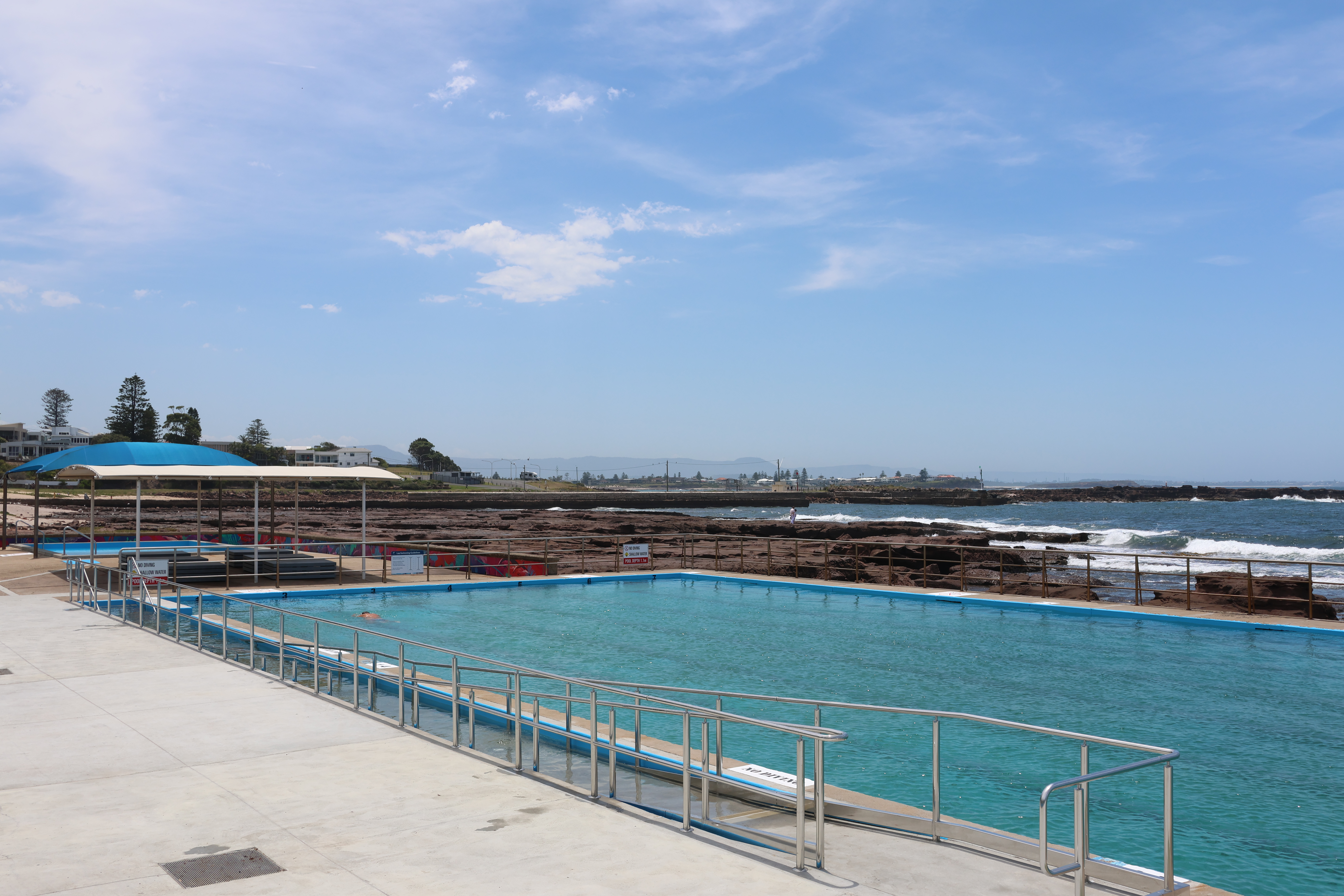 Beverley Whitfield Ocean Pool is a 50-metre saltwater pool located at the southern end of the Shellharbour Village foreshore at 19 Hockey Esplanade. Set within beautiful coastal surrounds, it’s a popular place to swim, relax and enjoy the outdoors.